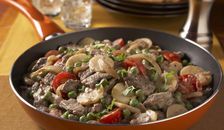 Cut beef steak lengthwise in half, then crosswise into 1/8-inch slices.